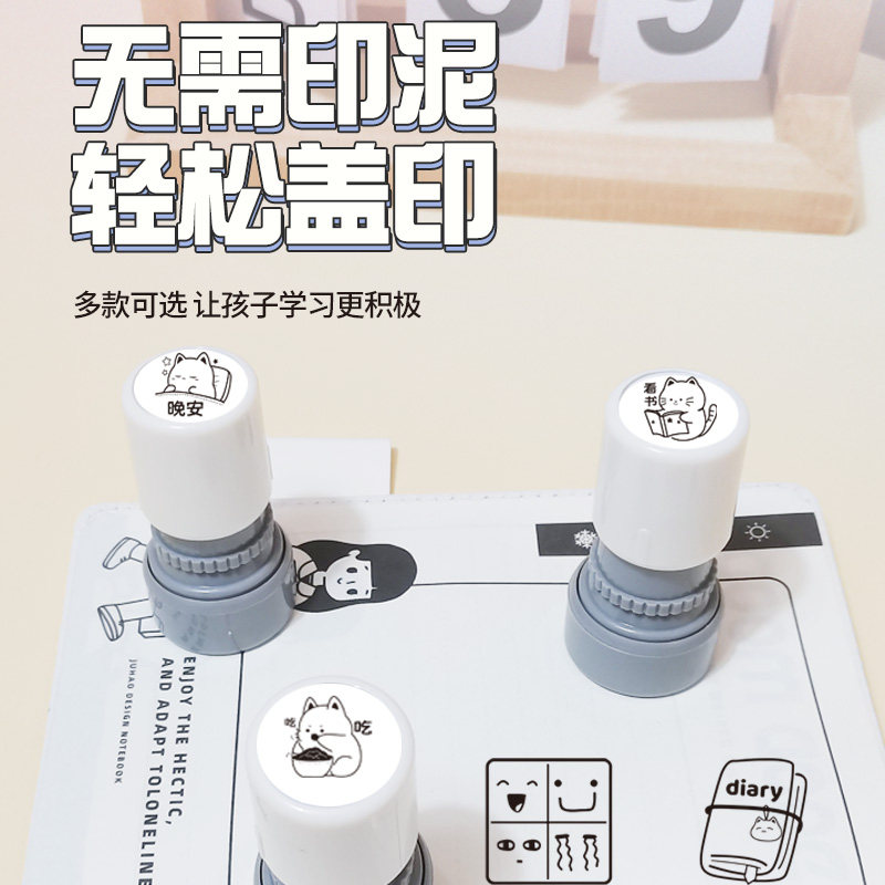 记录可爱卡通diy手账ins兔子兔兔猫咪喝奶茶打卡奖励心情盖印印章