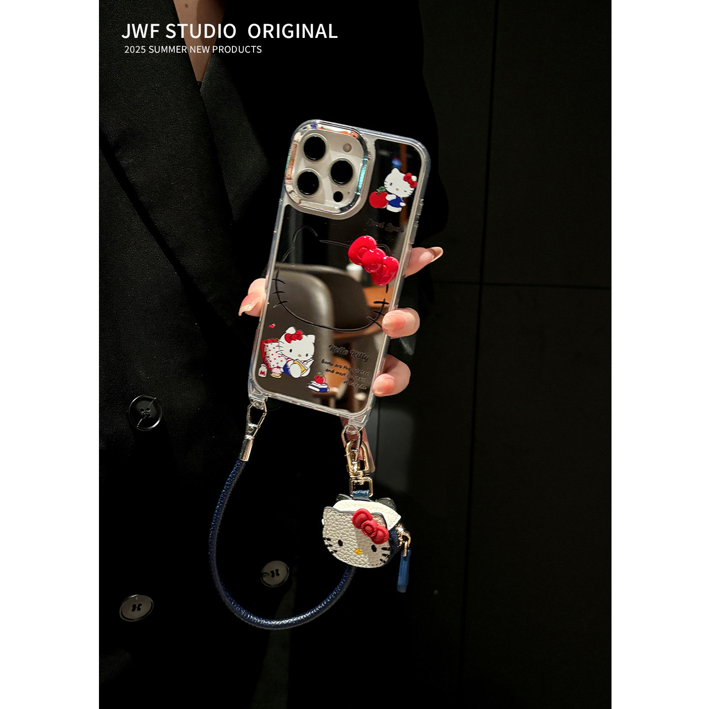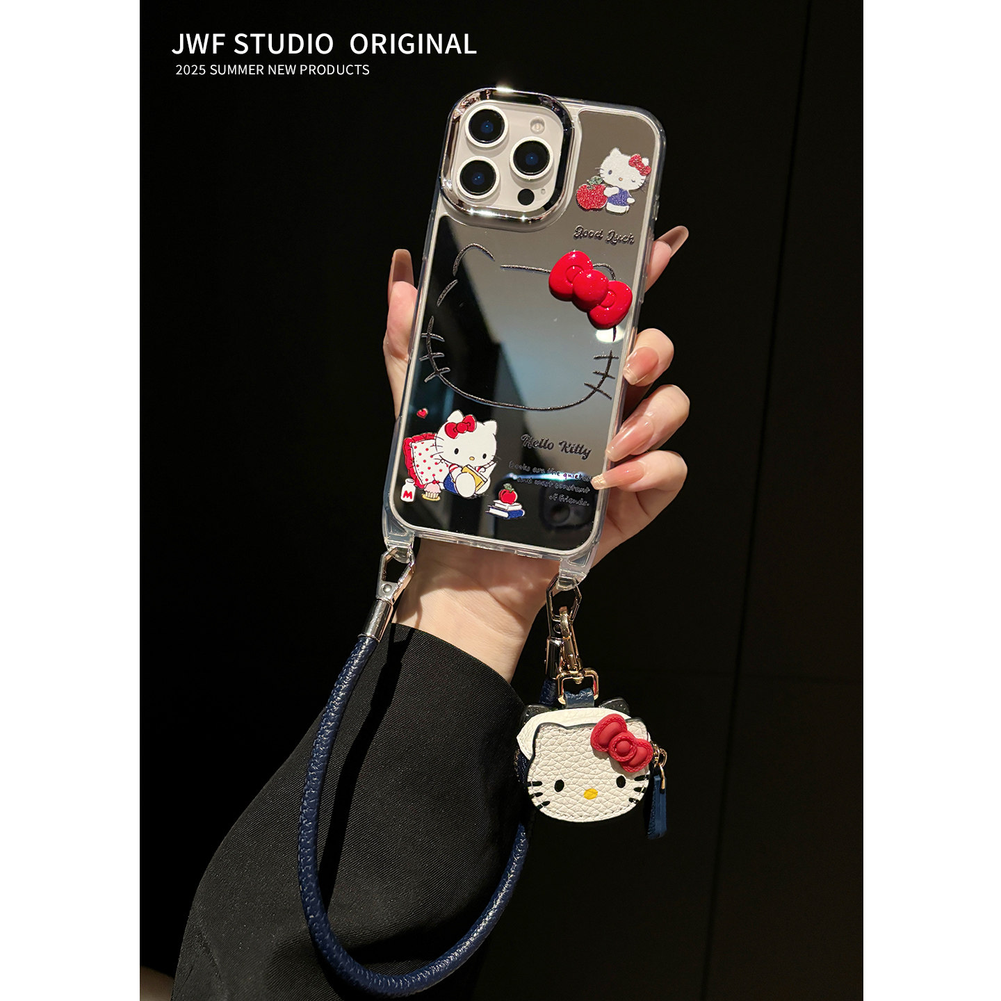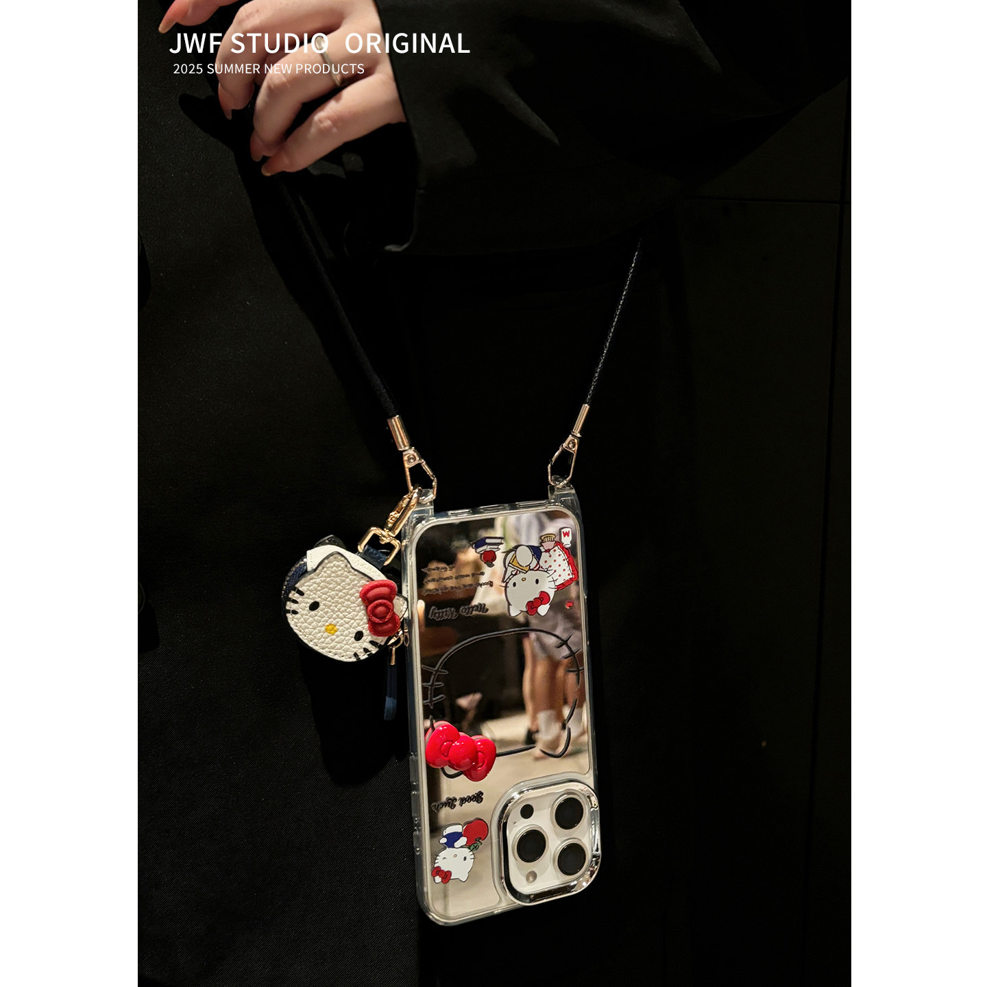 斜挎可背适用苹果16promax手机壳化妆镜iPhone17pro可爱女立体蝴蝶结15pro挂16绳13好看12防摔14promax挂绳11