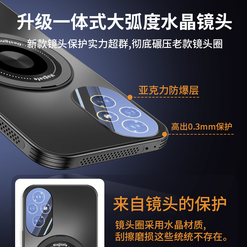 适用荣耀200手机壳新款高级感散热磁吸honor荣耀200pro保护套男女生超薄透气全包防摔不顶膜自带镜头膜爆款