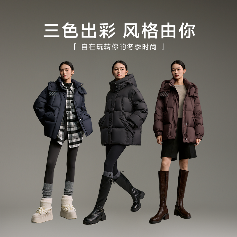 【鞠婧祎同款】鸭鸭2025年冬新款百搭短款女士纯色立领羽绒服外套