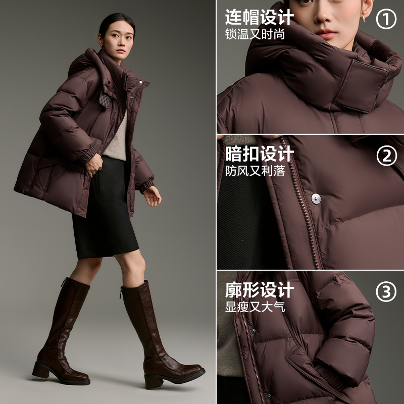 爱居兔基础中长款保暖羽绒服2025年冬季新款女通勤保暖加厚冬外套