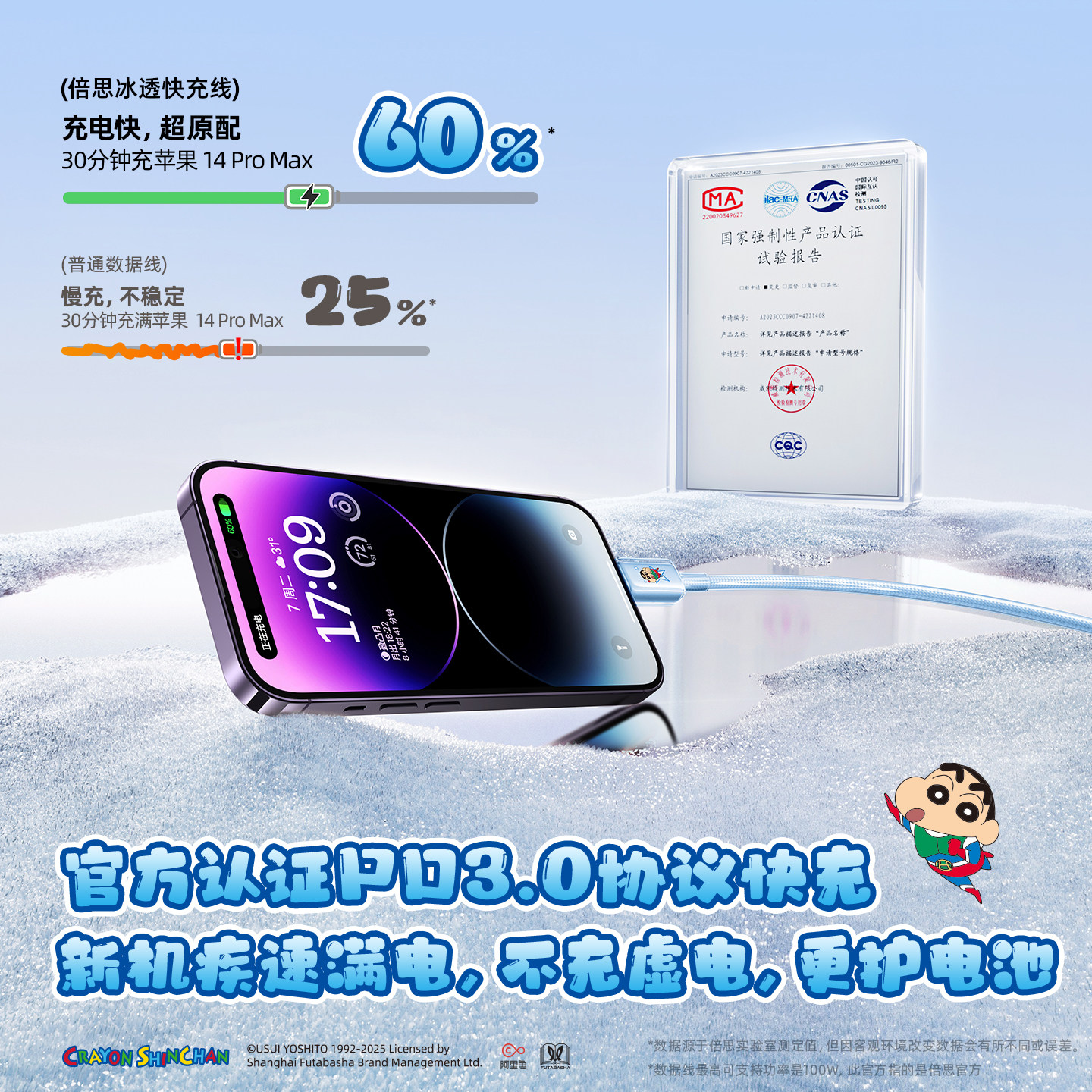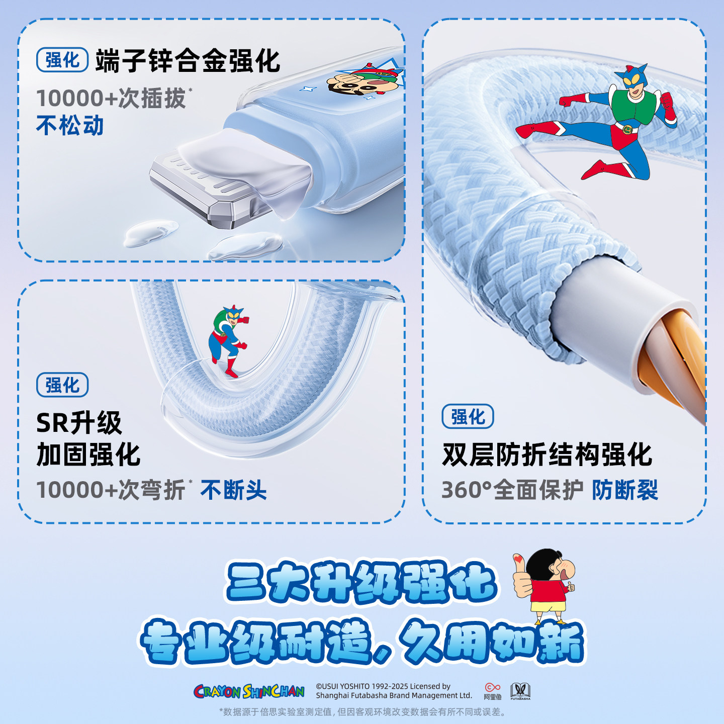 【蜡笔小新正版联名】倍思适用苹果14充电线iphone13数据线快充17pro器12手机16车载USB15promax平板8ipad11