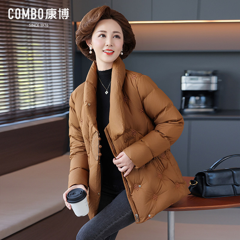 combo/康博冬季新中式盘扣羽绒服女中老年交叉领90绒刺绣妈妈装
