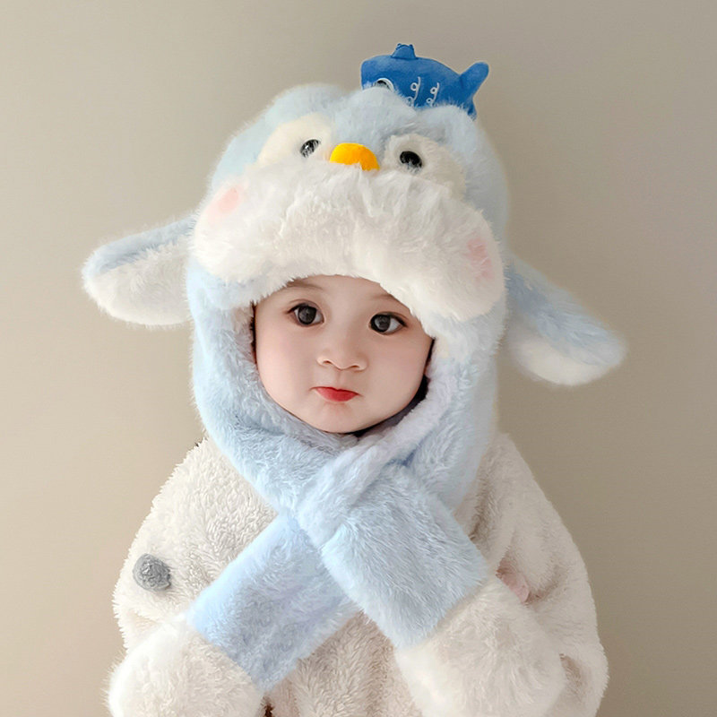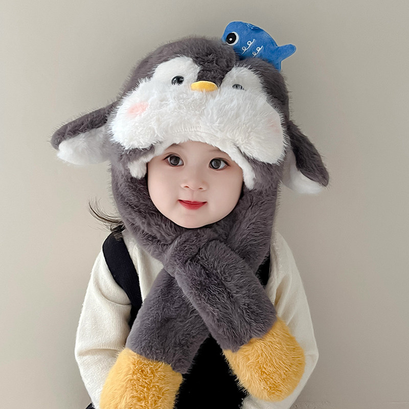 宝宝儿童企鹅帽子冬季会动的毛绒加厚男女童婴儿一体护耳保暖秋冬