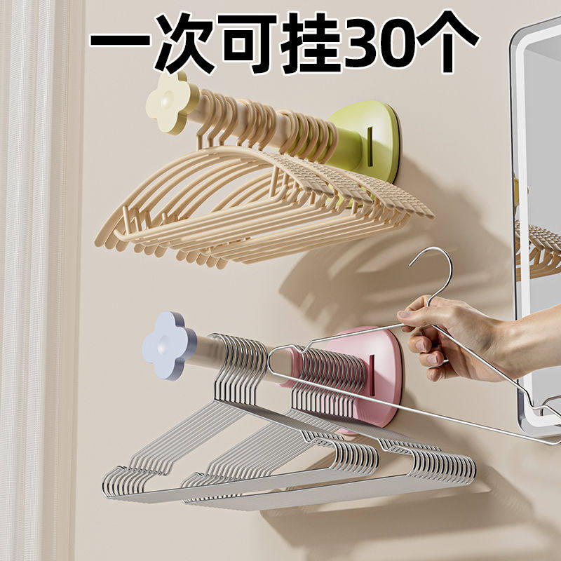免打孔衣架收纳神器多功能可伸缩整理架阳台壁挂家用晾衣架收纳架