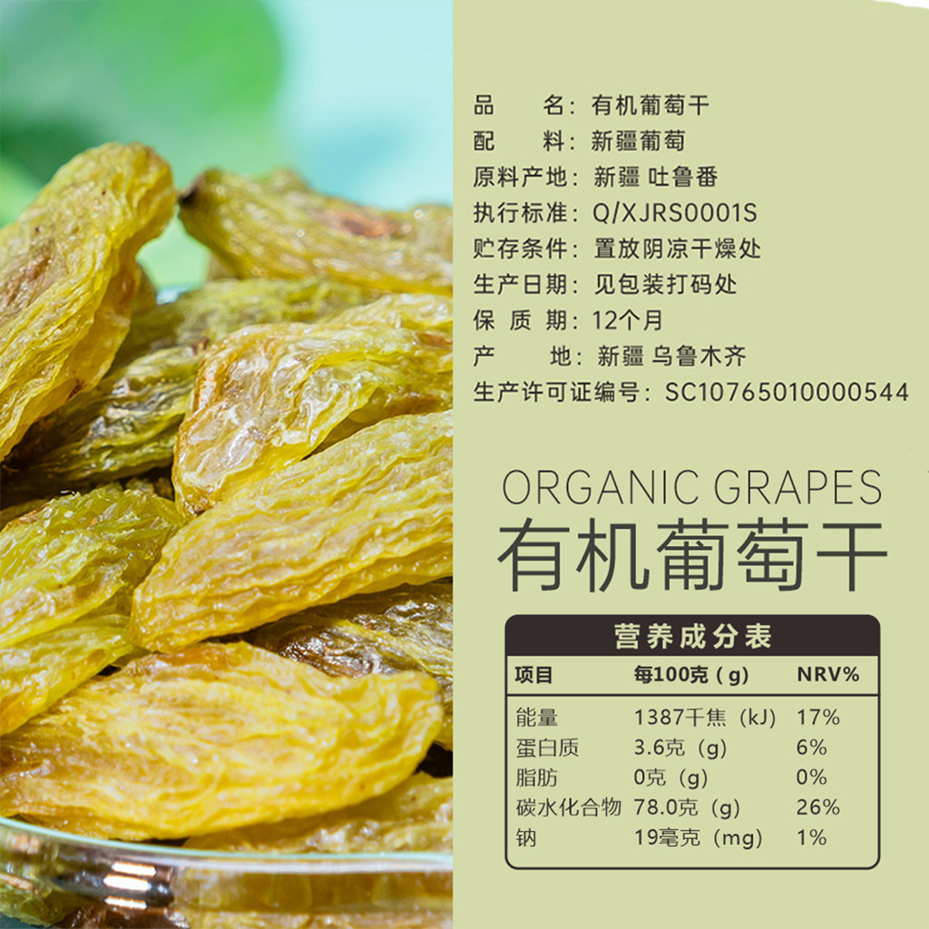 臻选 新边界有机葡萄干500g新疆特产非特级超大免洗干果零食