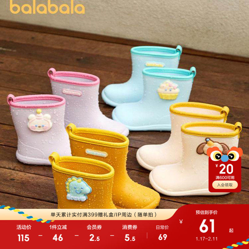巴拉巴拉童鞋儿童中筒雨靴可爱卡通图案软底舒适外穿男童女童雨鞋