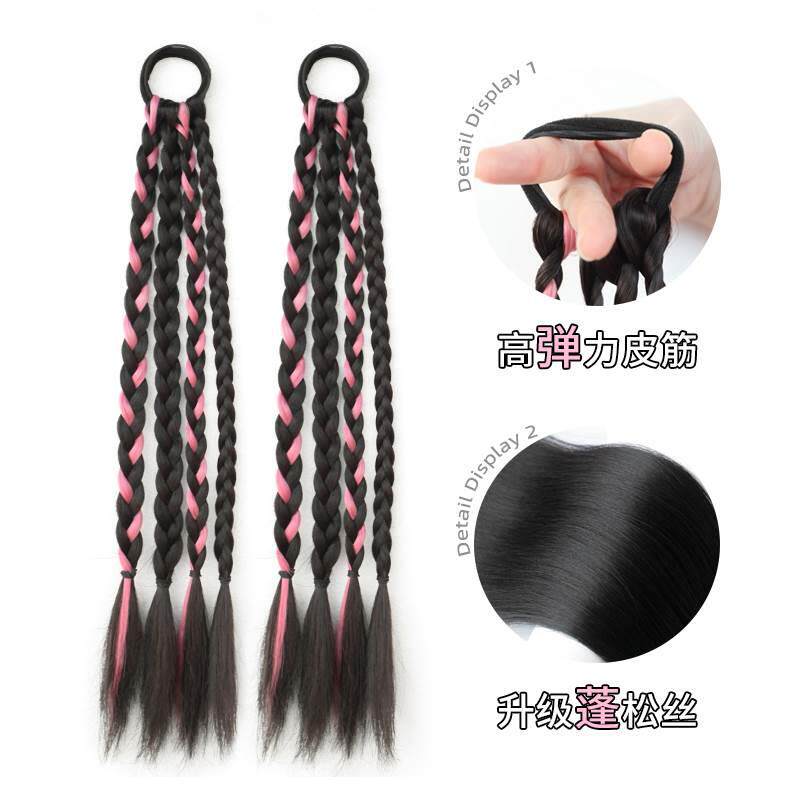 假发辫子女马尾挑染编发长辫双马尾脏辫彩色辣妹拳击头发真发甜酷