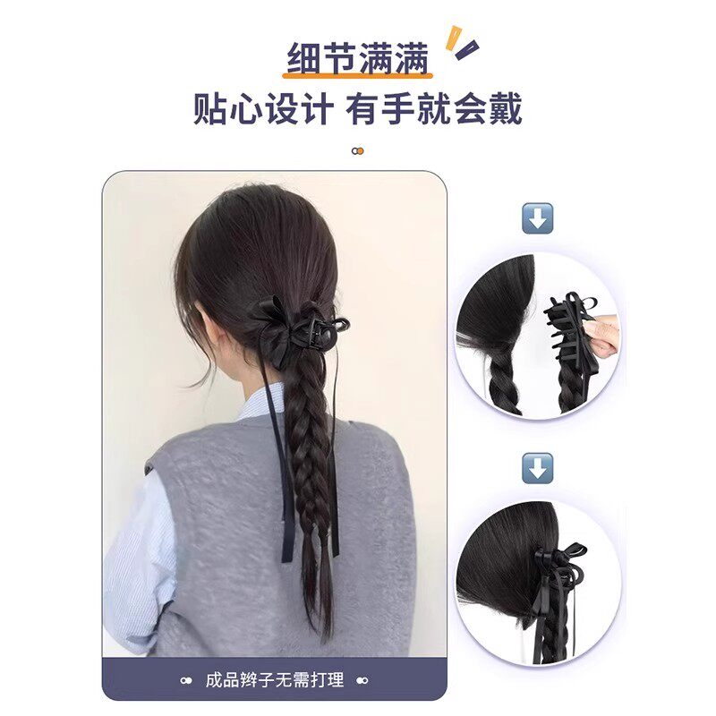 ins假发辫子长发抓夹麻花辫新中式女双马尾马尾编发蝴蝶结发型