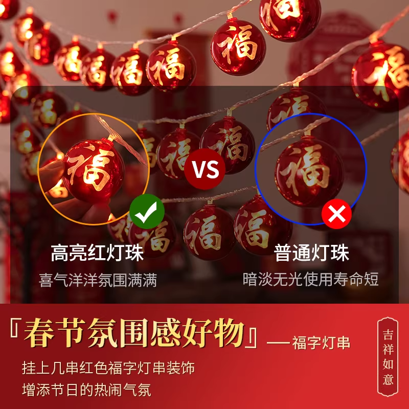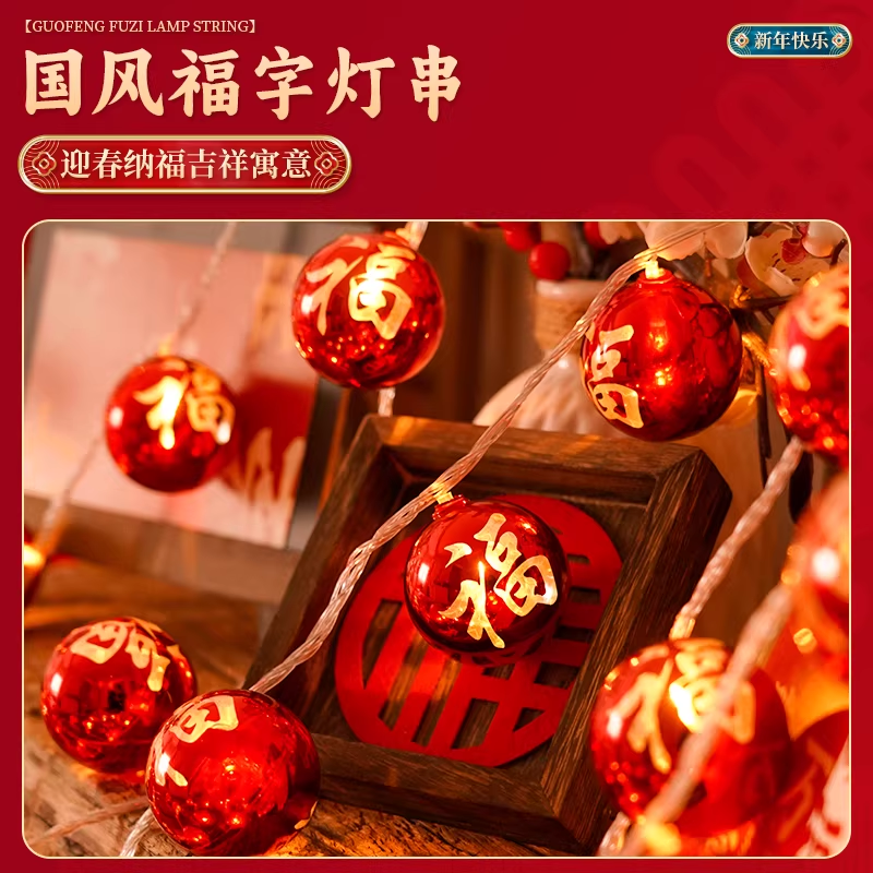 新年装饰灯串福字彩灯氛围灯饰春节过年气氛灯新款阳台闪灯小串灯
