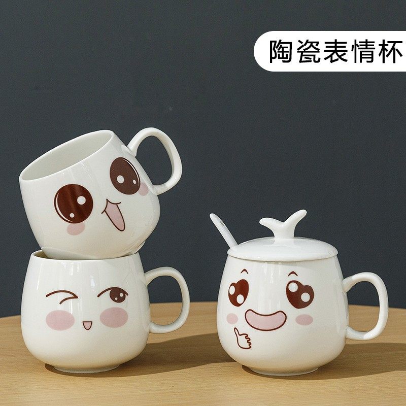杯子创意陶瓷马克杯情侣杯水杯陶瓷杯带盖个性萌系表情可爱咖啡杯