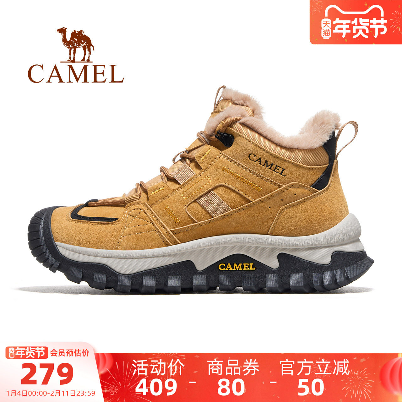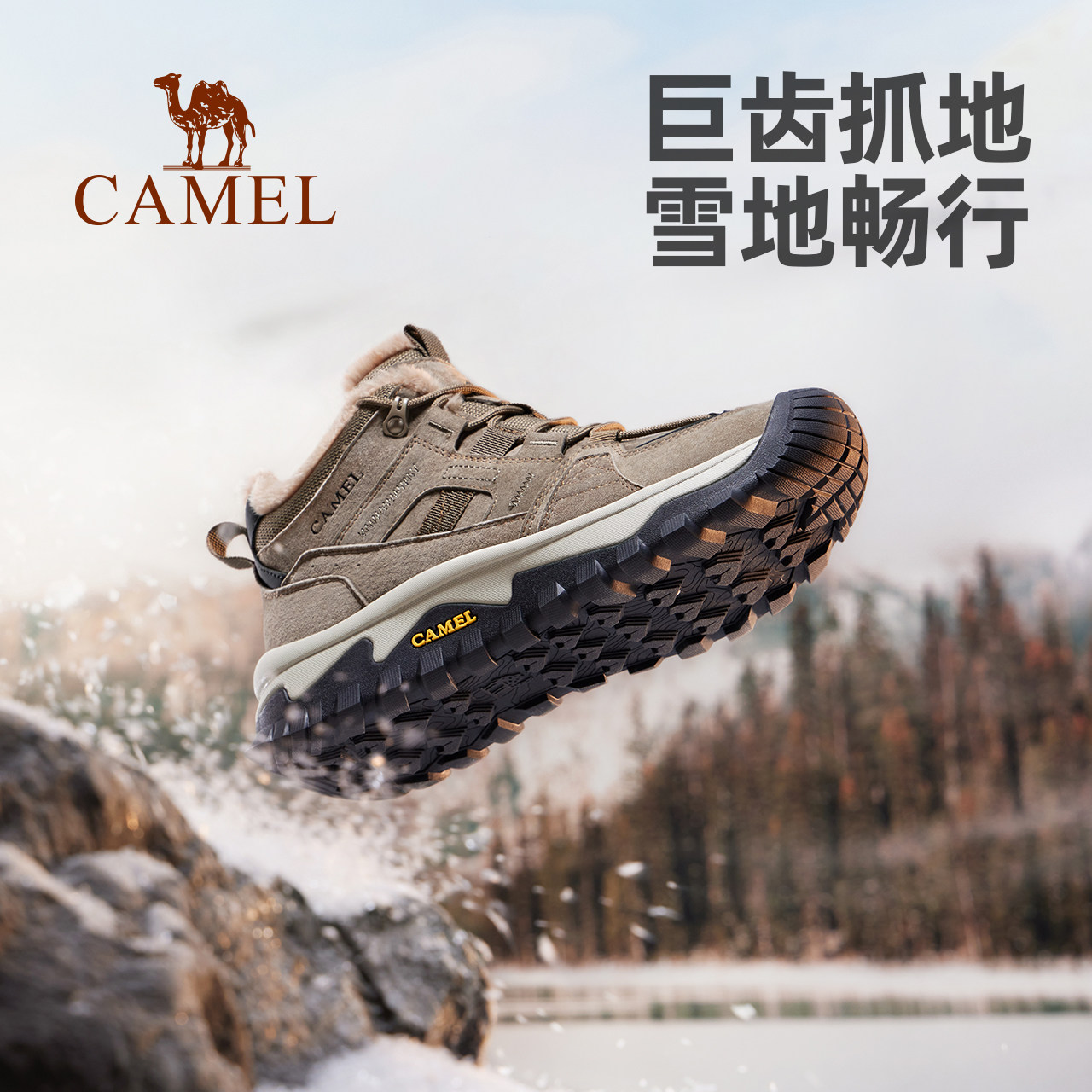 骆驼男鞋高帮鞋2025冬季加绒加厚保暖雪地靴男户外徒步登山棉鞋女