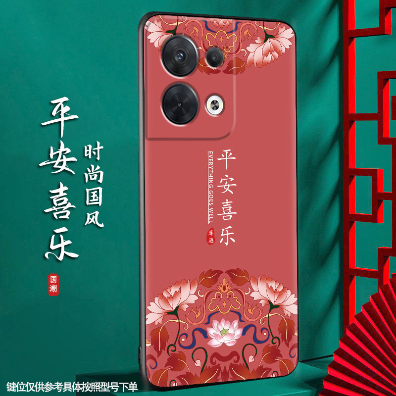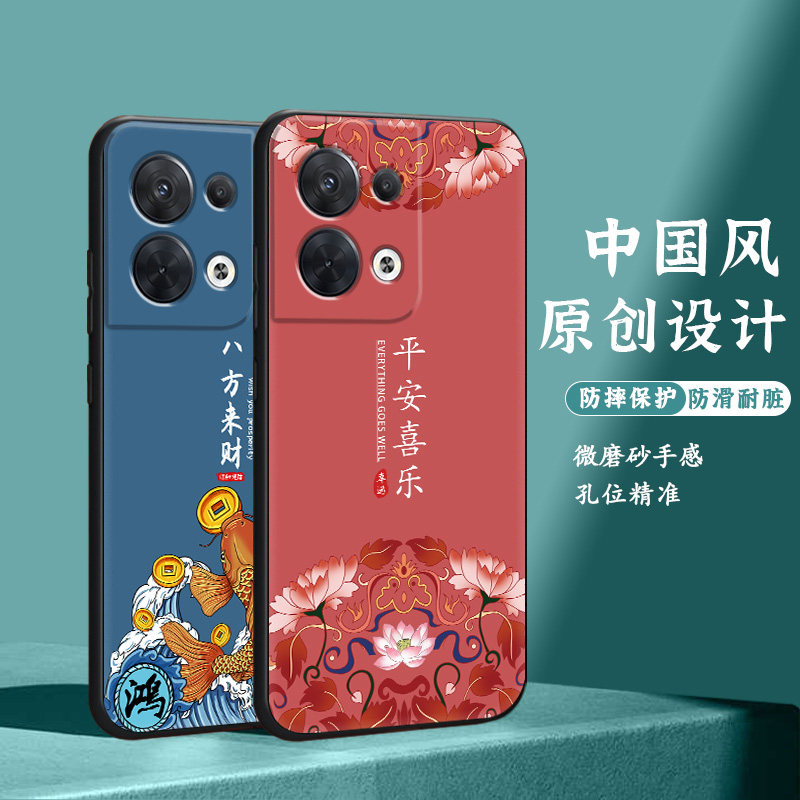 原创国风opporeno8手机壳reno8pro手机套全包边防摔保护硅胶软新款国潮男女中国风新品磨砂民族风好运连连