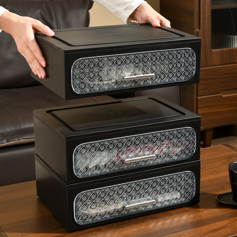 高透亚克力桌面收纳盒翻盖式防尘整理盒卧室宿舍办公室带盖收纳筐