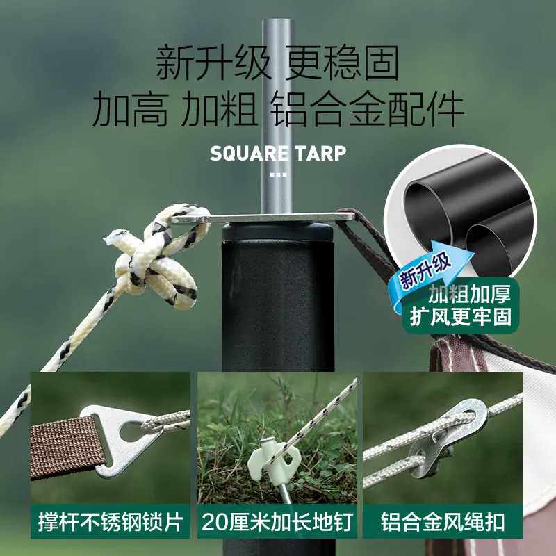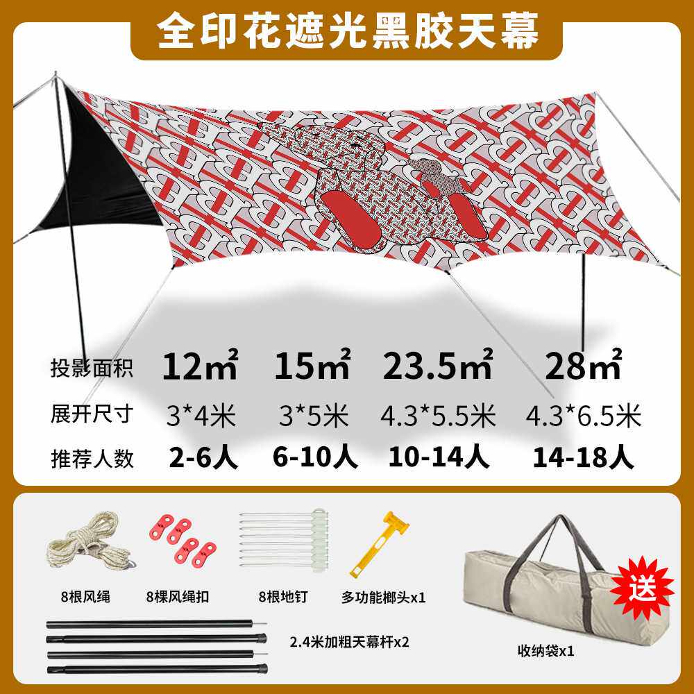 户外蝶形黑胶天幕帐篷 野外露营防晒遮阳棚便携野营八角印花天幕