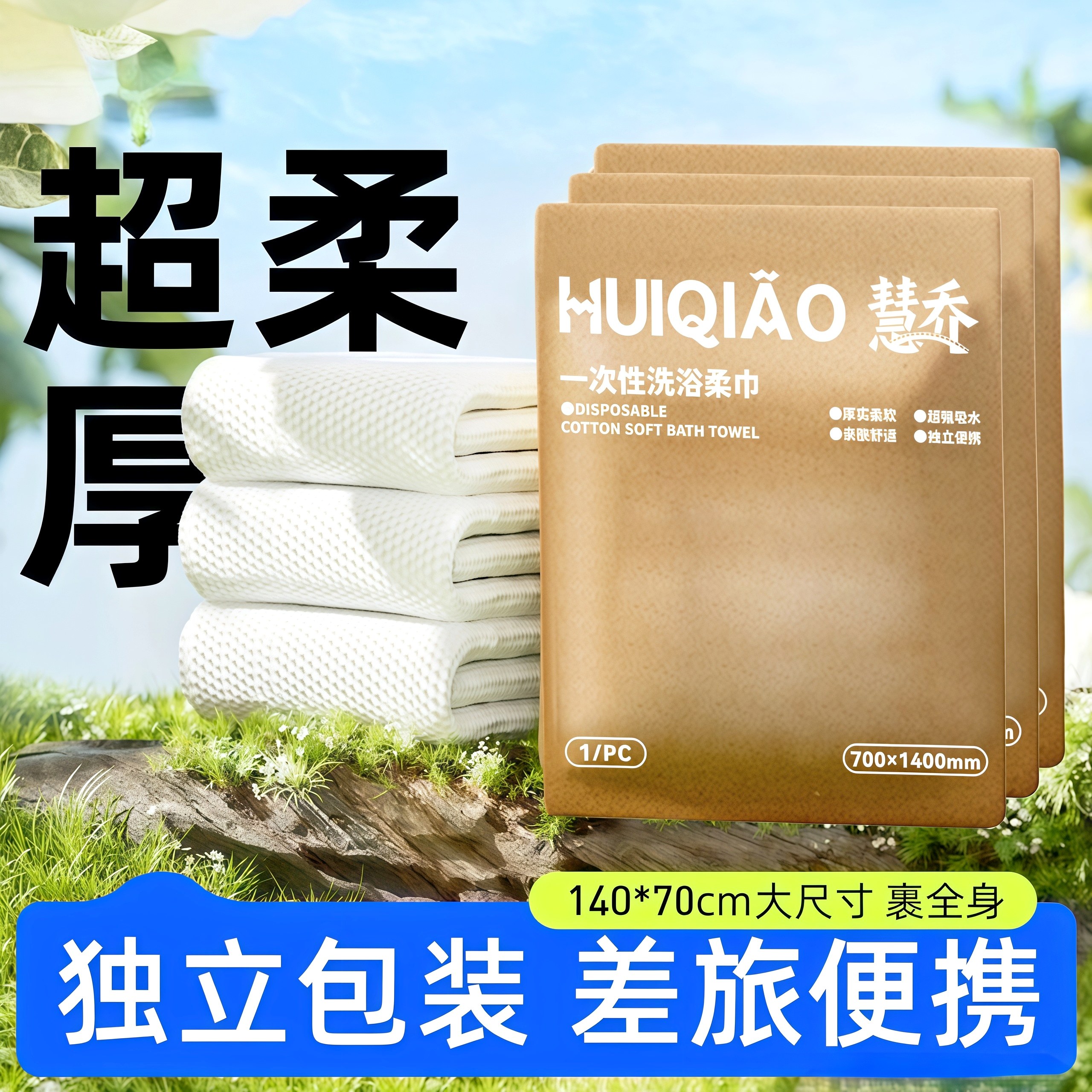 一次性浴巾旅行单独包装加大加厚一次性毛巾压缩纯棉旅游酒店用品