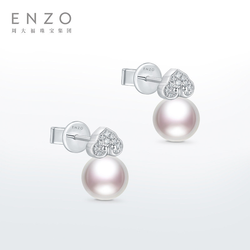 ENZO「如意系列」18K金海水珍珠钻石耳钉女EZT487新春礼物