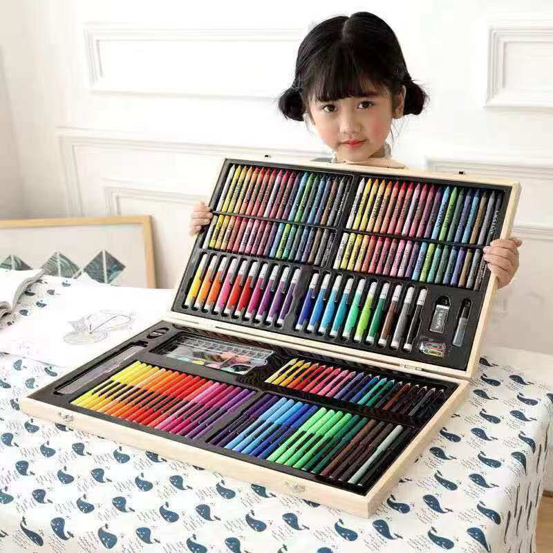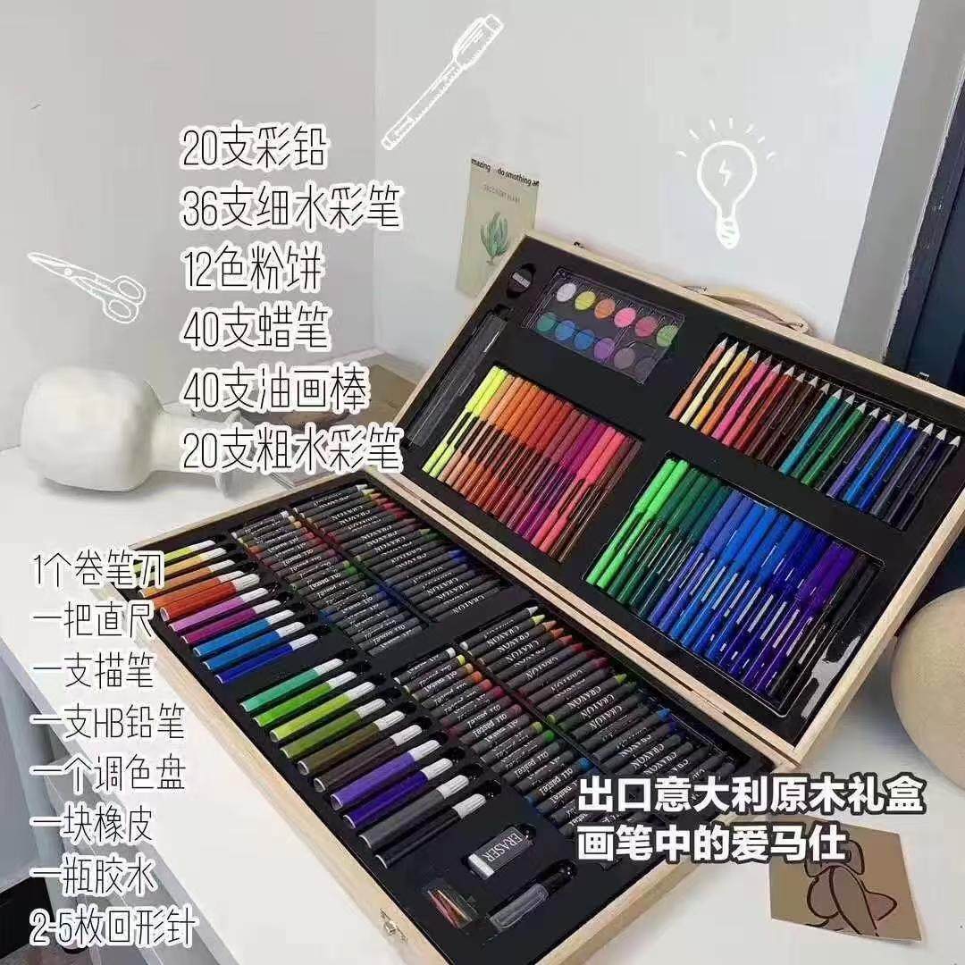 180木盒水彩笔绘画礼盒安全无毒可水洗小学生彩铅蜡笔粉饼一整套