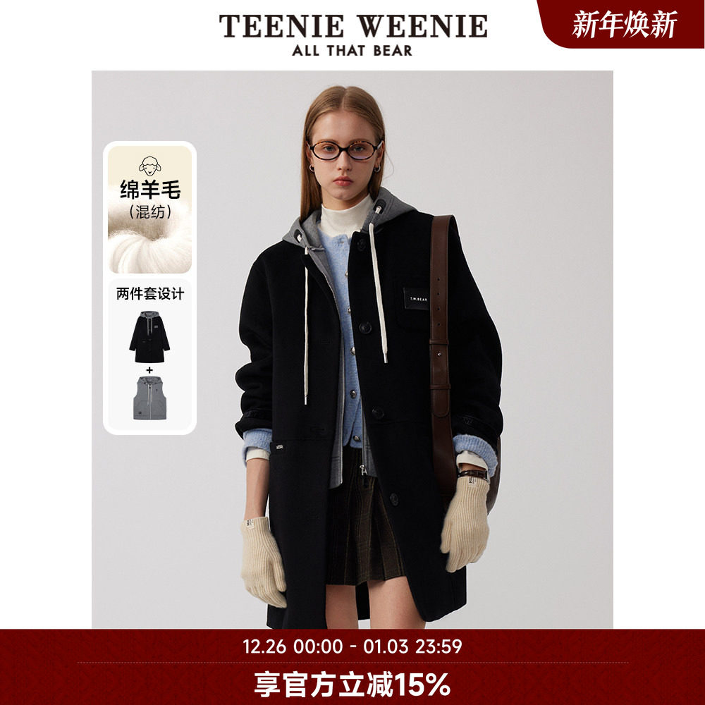 TeenieWeenie小熊奥莱两件套通勤双面毛呢大衣卫衣连帽外套