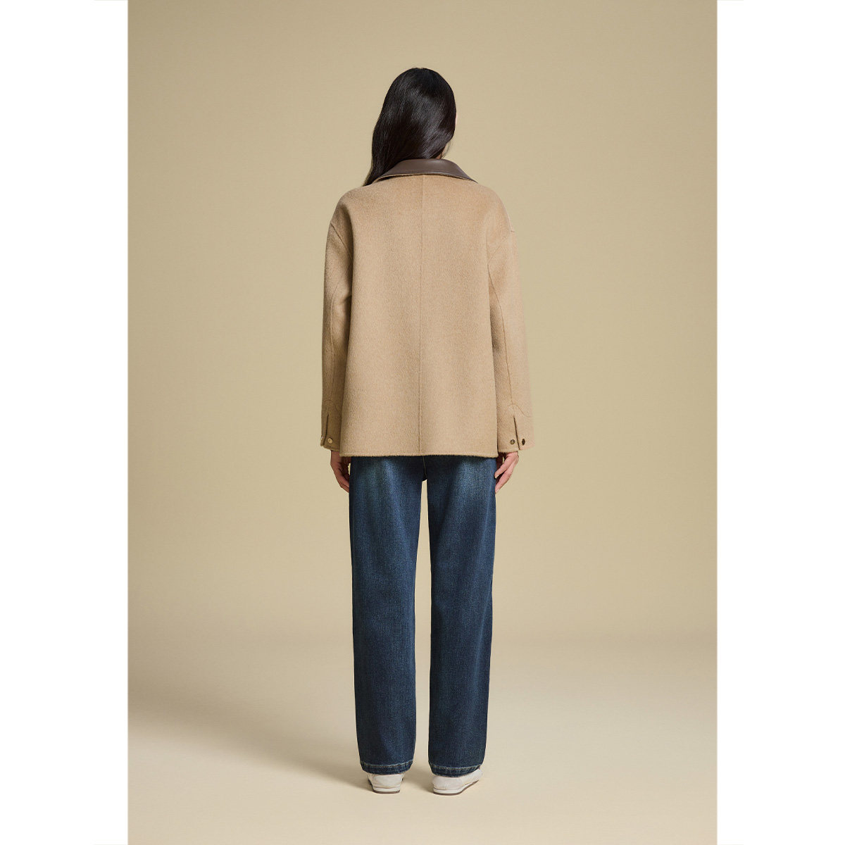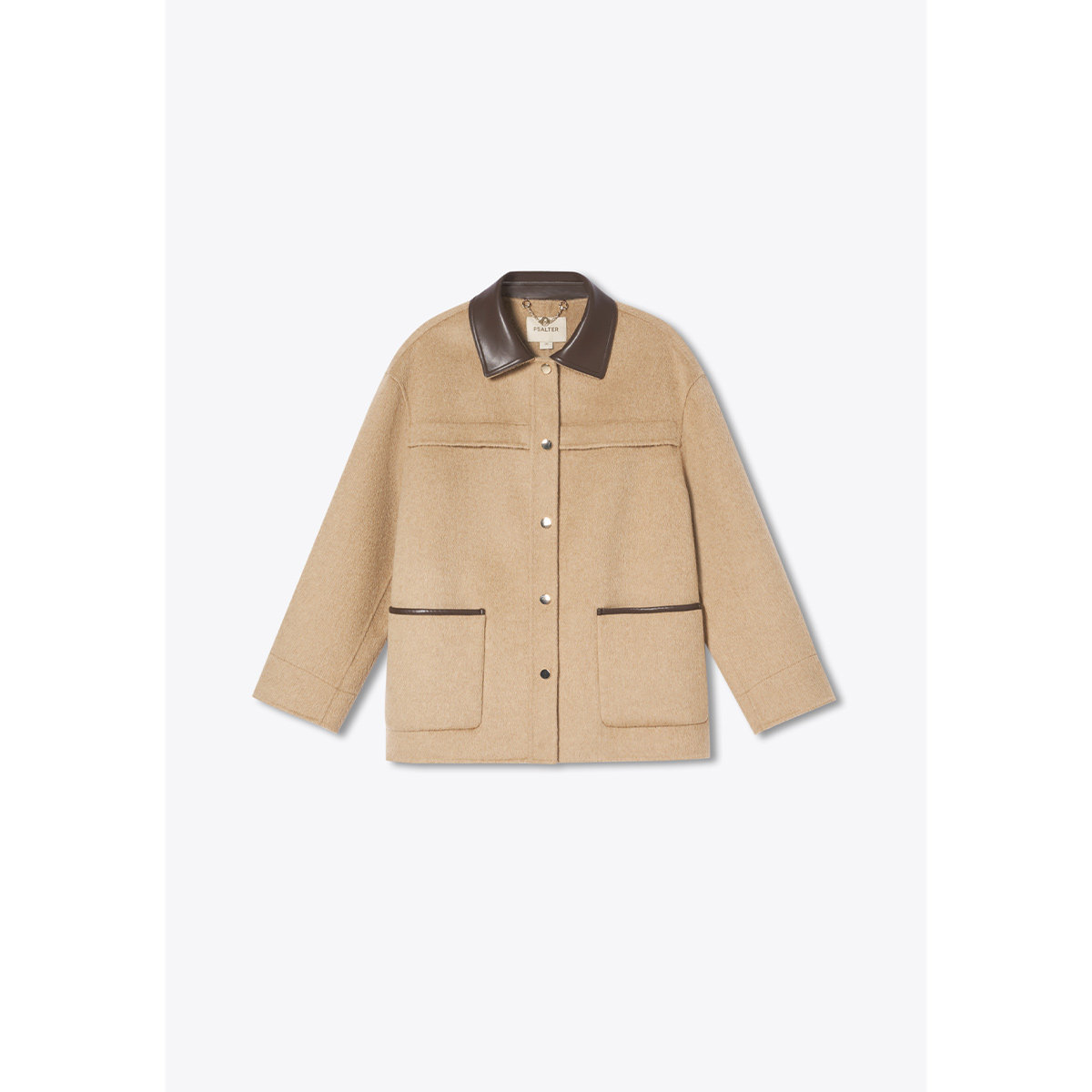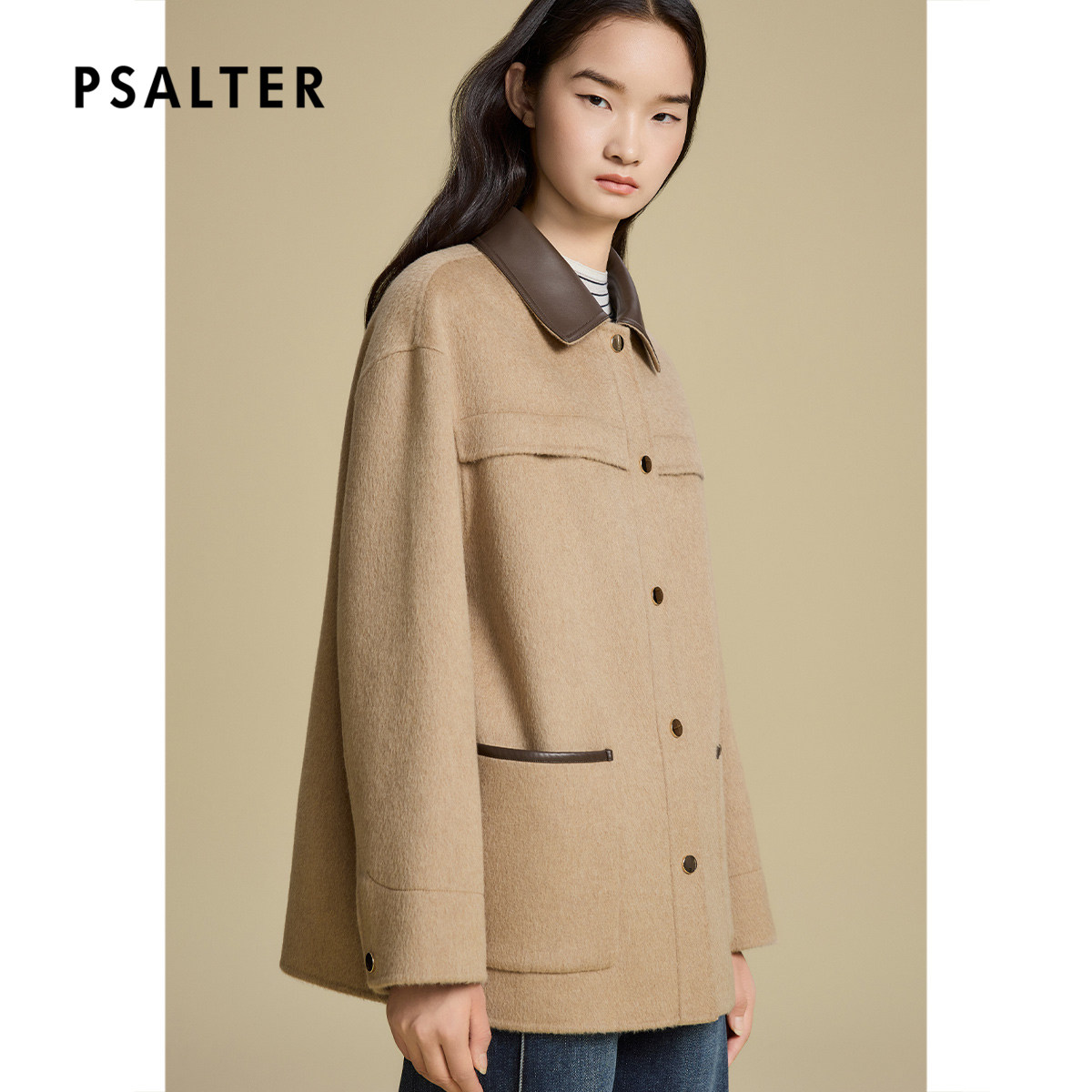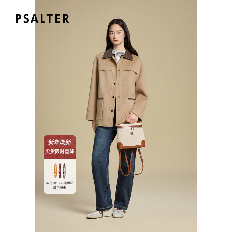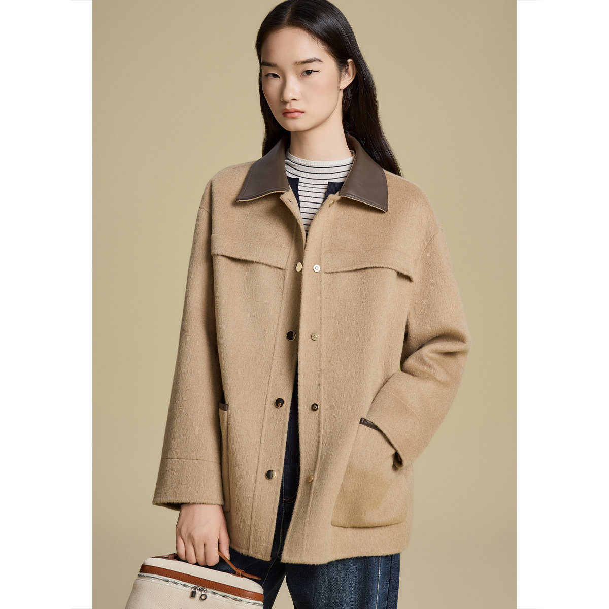诗篇专选撞色皮质翻领巴恩风双面毛呢外套2025冬季新款