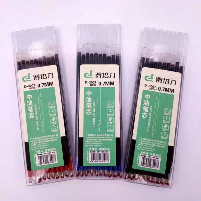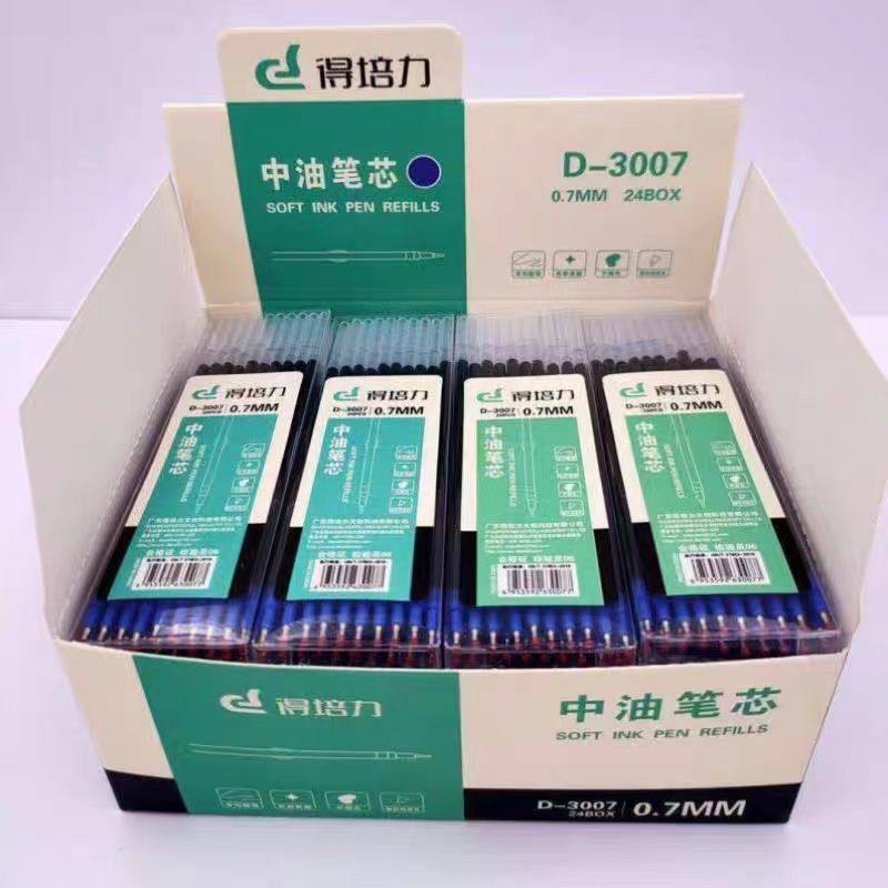 得培力3007中油笔芯水感顺滑黑红蓝色油笔粗头0.7mm中油笔替换芯