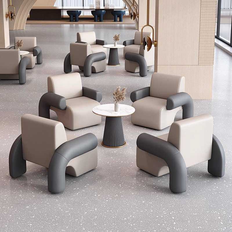 北欧轻奢洽谈沙发桌椅组合酒店大堂接待区沙发售楼处商务皮艺沙发