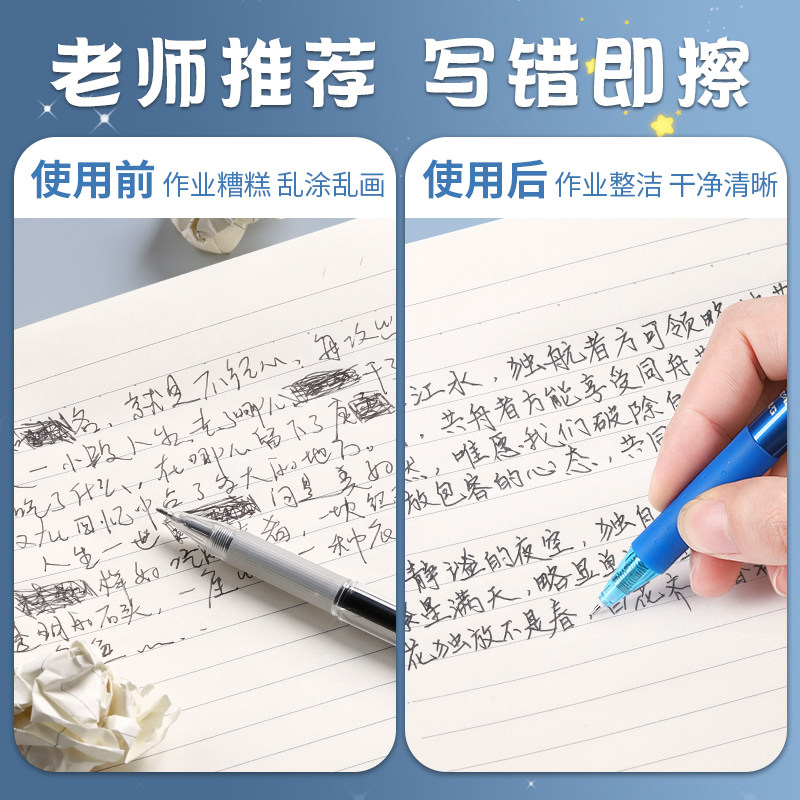 晨光可擦笔小学生专用三年级按动热可擦中性笔蓝色黑色魔力擦笔芯易擦笔ST笔热敏可擦优握大容量速干摩易擦