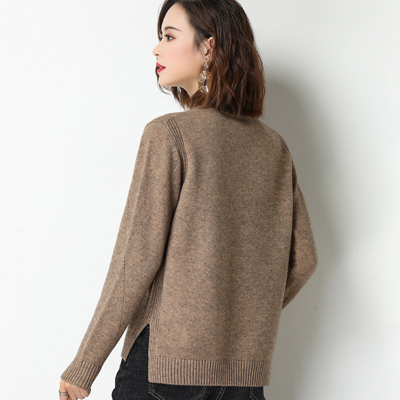 2025秋冬新款羊绒衫女低圆领宽松显瘦毛衣百搭100羊毛针织打底衫
