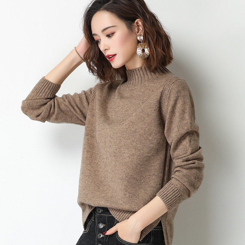品牌高级感羊毛衫女半高领宽松毛衣秋冬加厚羊绒长袖针织打底衫新
