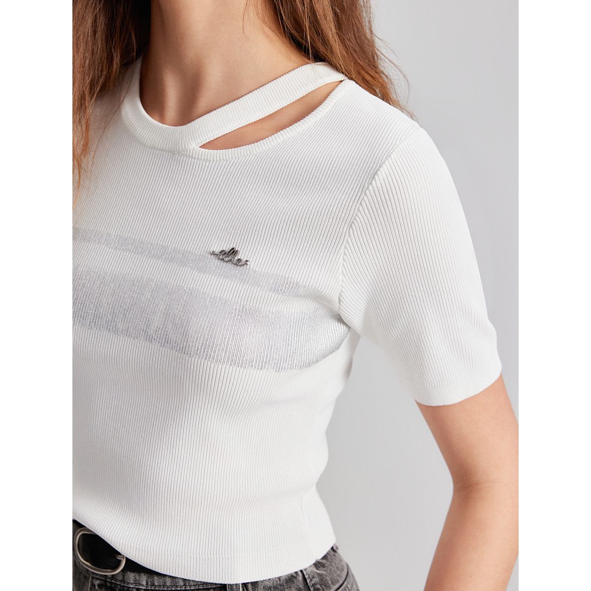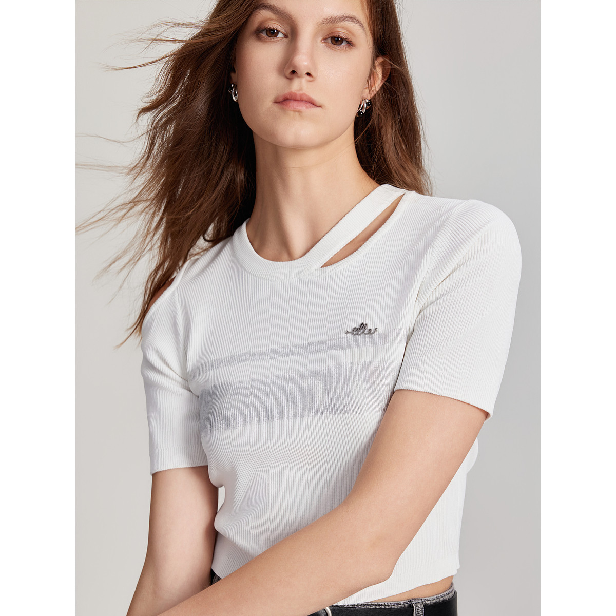 ELLE法式设计感镂空修身毛针织衫女2025夏季新款简约薄款短袖毛衣