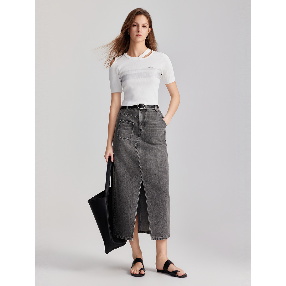 三福长袖上衣2025新款秋季圆领修身针织衫简约纯色内搭打底衫女装
