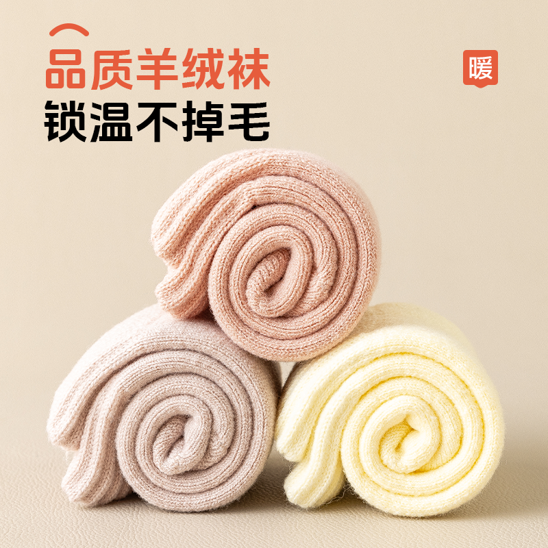 女童袜子秋冬加绒加厚保暖儿童中筒袜男女童羊绒袜冬天宝宝羊毛袜