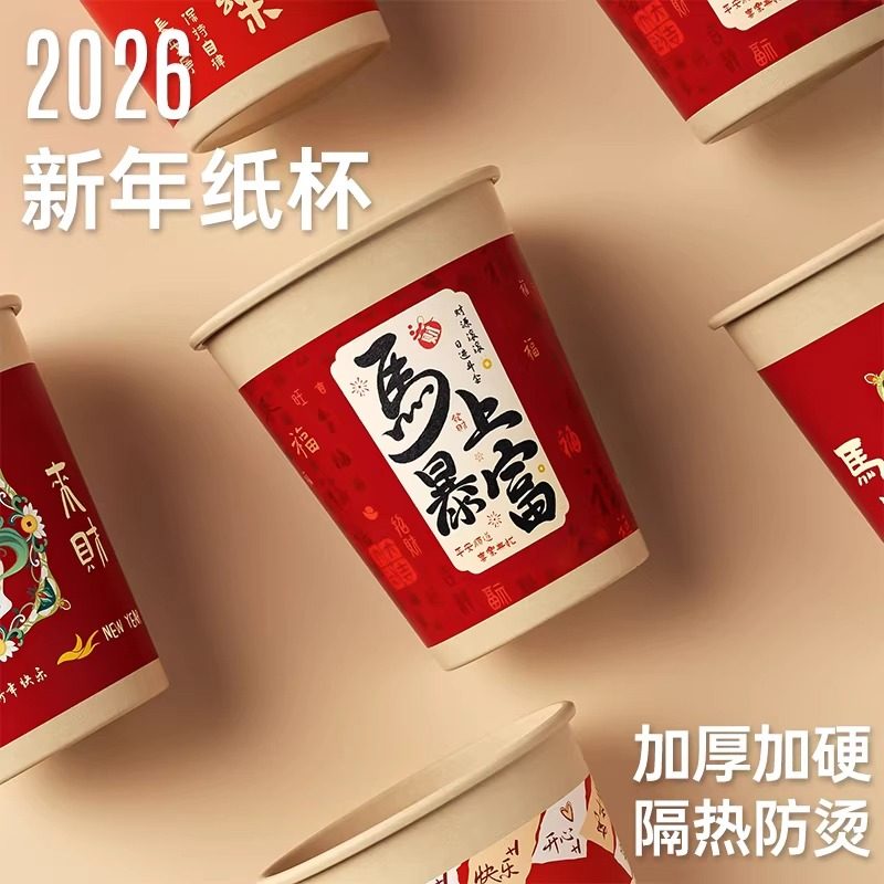 一次性杯子纸杯2026马年新年水杯加厚家用过年整箱乔迁食品级加硬