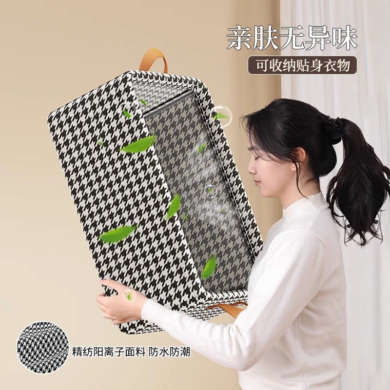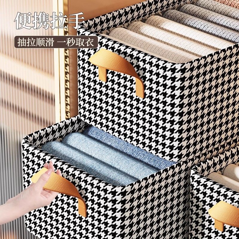 衣服收纳箱千鸟格家用衣柜分层整理收纳神器放衣物布艺折叠收纳筐