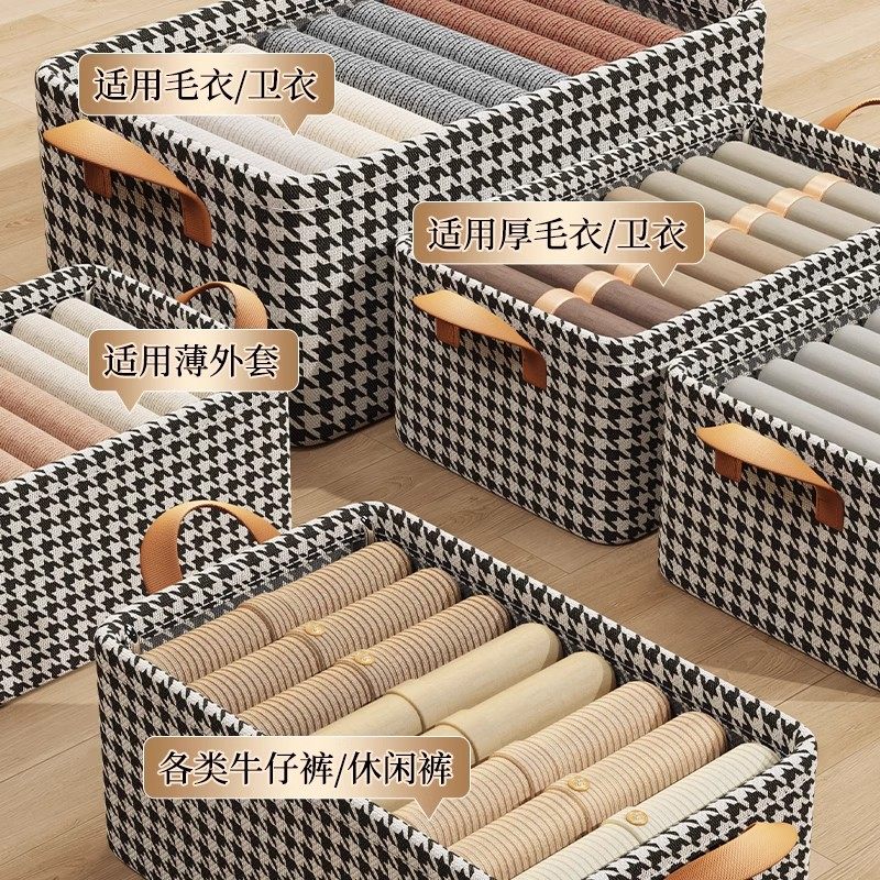 千鸟格衣服收纳盒家用布艺衣柜分层神器放衣物裤子储物筐框整理箱