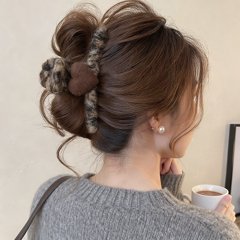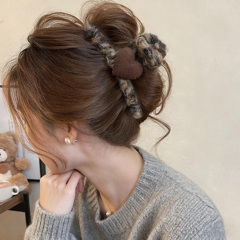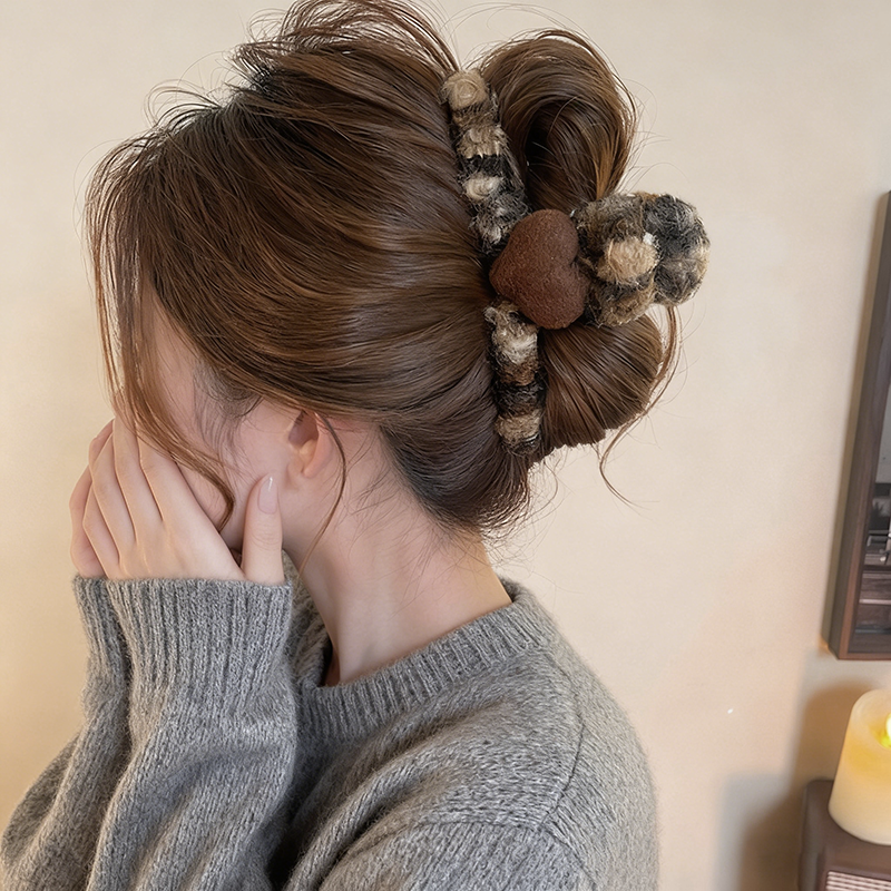 韩系毛绒爱心全包抓夹女高级感2025新款毛毛发夹后脑勺鲨鱼夹发饰