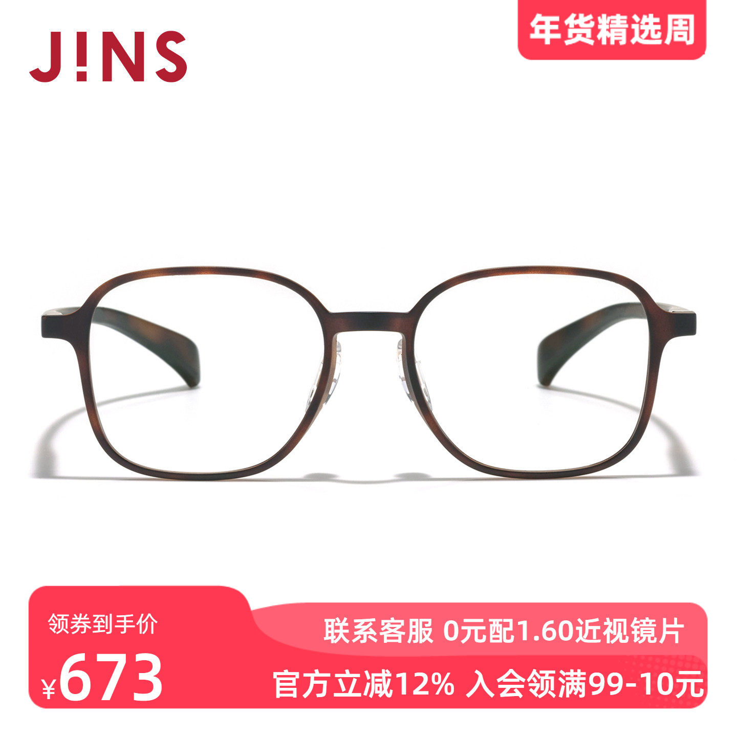 JINS睛姿近视眼镜360°系列多边形框架可加配防蓝光镜片URF24S266