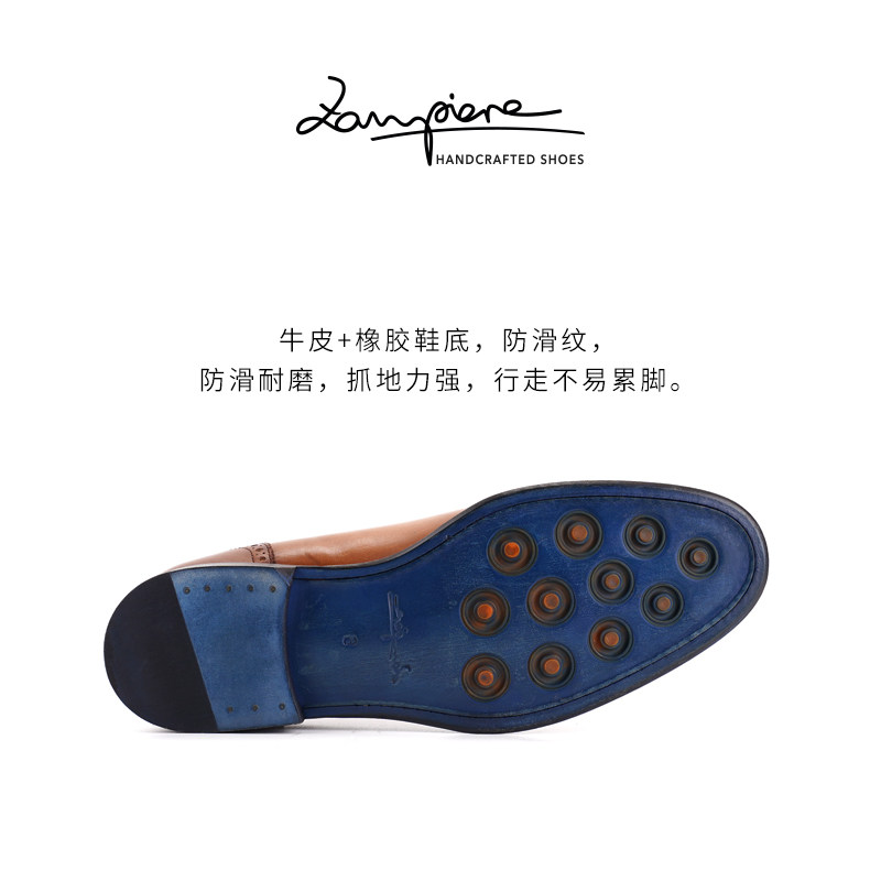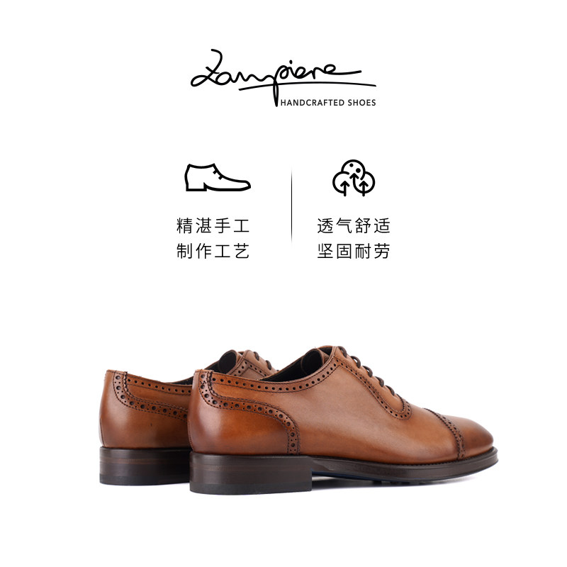 ZAMPIERE西班牙进口时尚布洛克雕花手工固特异真皮男士皮鞋5309