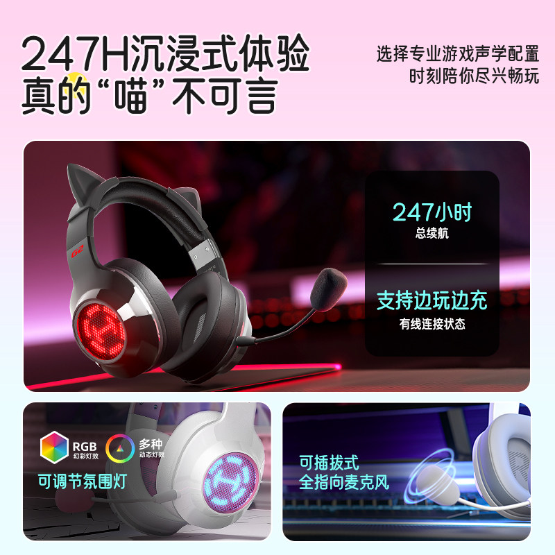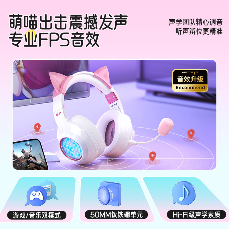 觅声白羊座有线头戴式耳机电竞游戏专用usb台式电脑麦克风二合一
