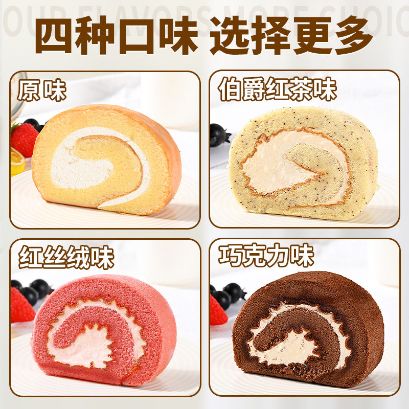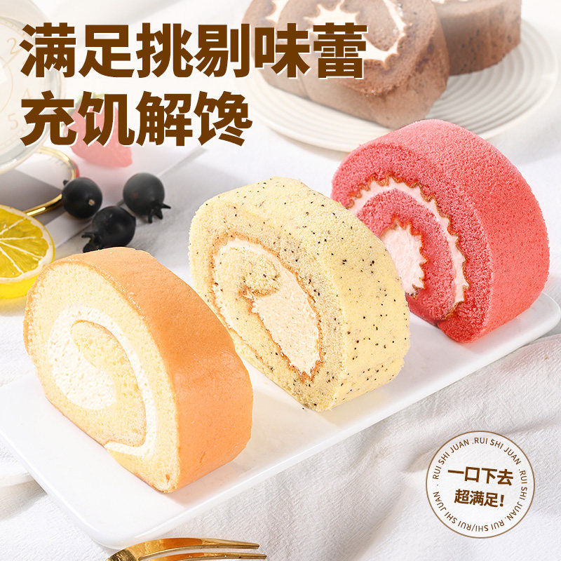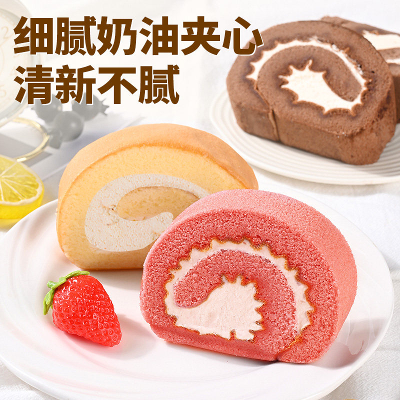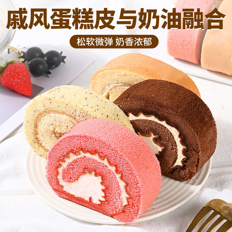 巧克力味瑞士卷奶油戚风蛋糕抹茶味甜品面包代早餐充饥零食品夹心