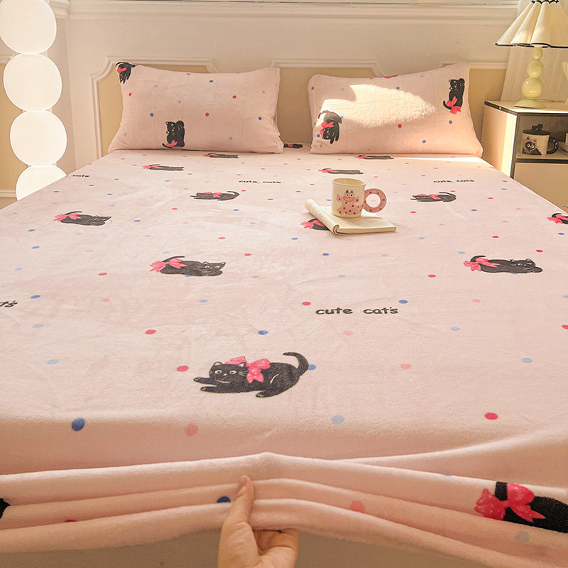 2025新款牛奶绒床笠加厚珊瑚绒高端三件套学生床罩全包床垫席梦思