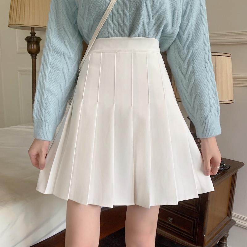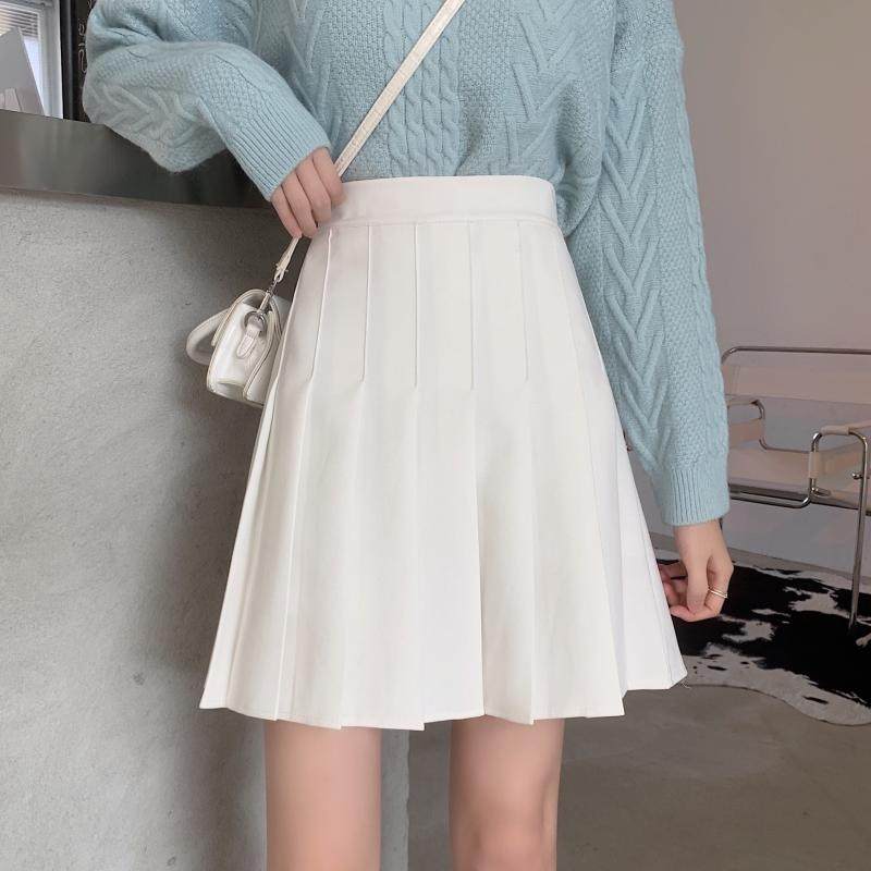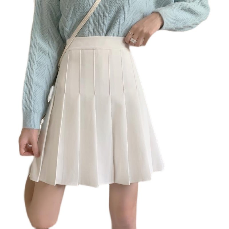白色学院风百褶裙女中裙春夏大码胖mm高腰防走光jk短裙显瘦半身裙