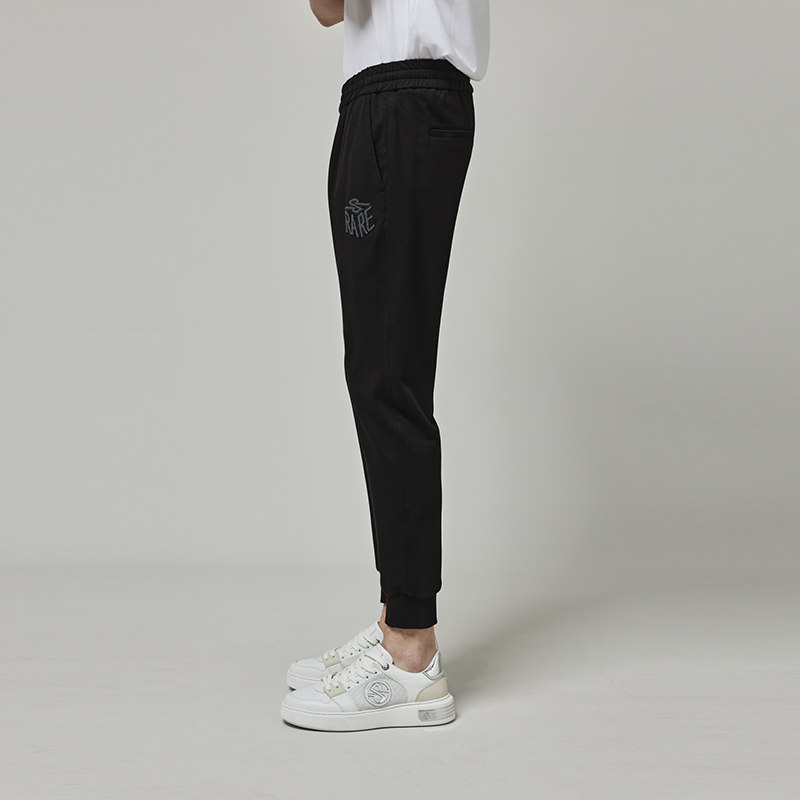 RARE威雅男裤 春夏新款黑色轻薄款卫裤立体LOGO幻彩钉珠运动裤