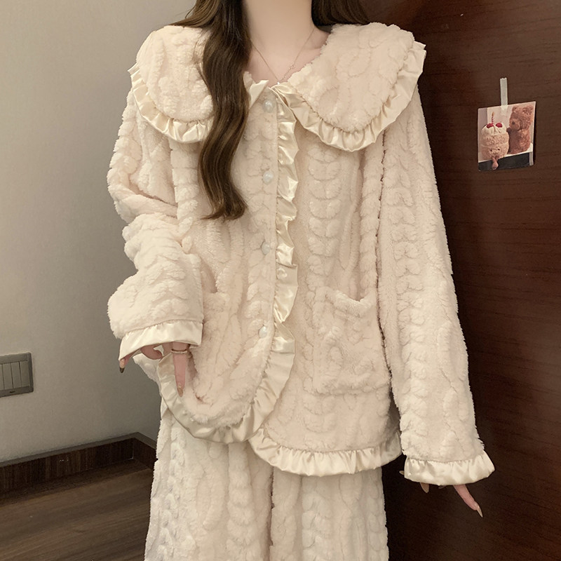 珊瑚绒睡衣女秋冬季加厚加绒公主风娃娃领开衫2025新款女士家居服