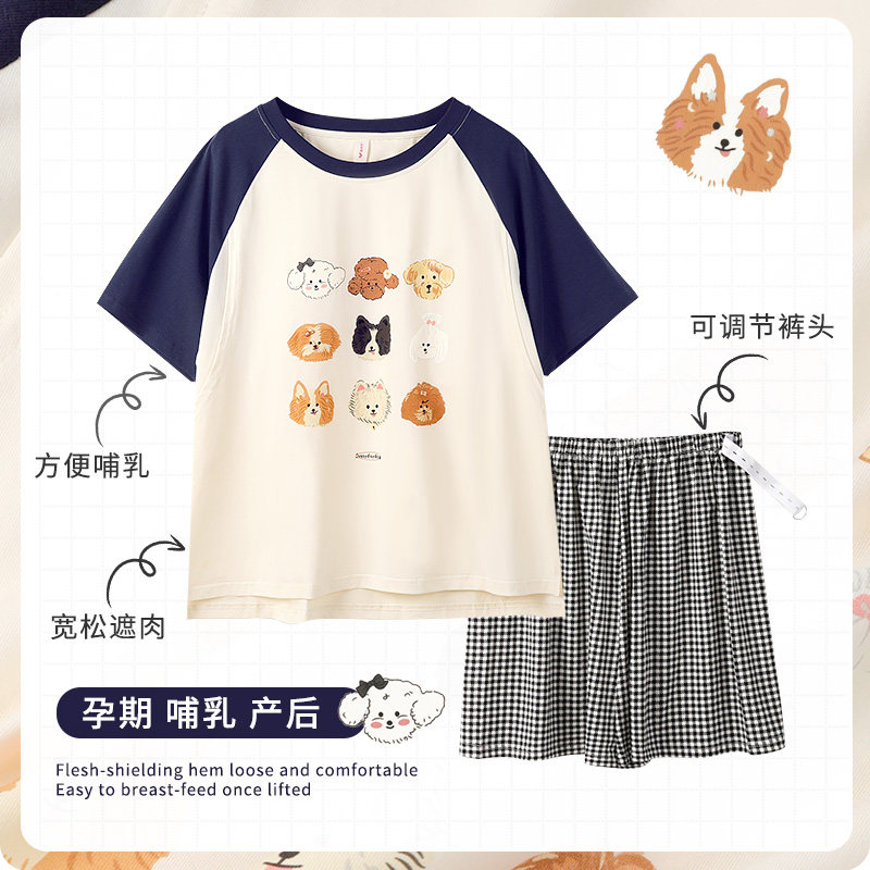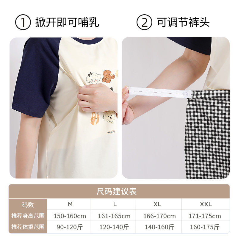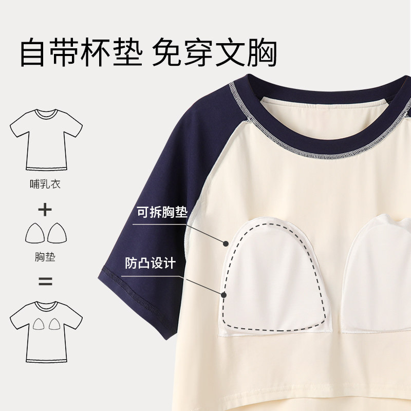 带胸垫丨夏秋短袖月子服纯薄款产后孕妇棉套头睡衣产妇待产哺乳衣