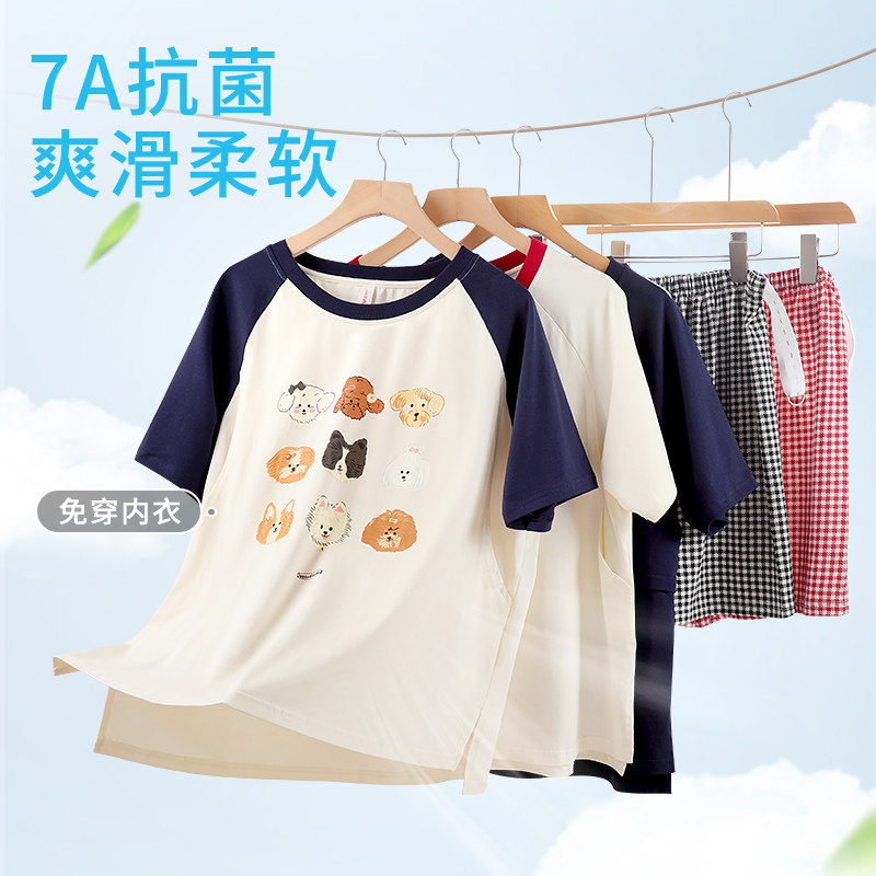 凉感莫代尔带胸垫月子服春夏季薄款产前产后春秋孕妇哺乳喂奶睡衣