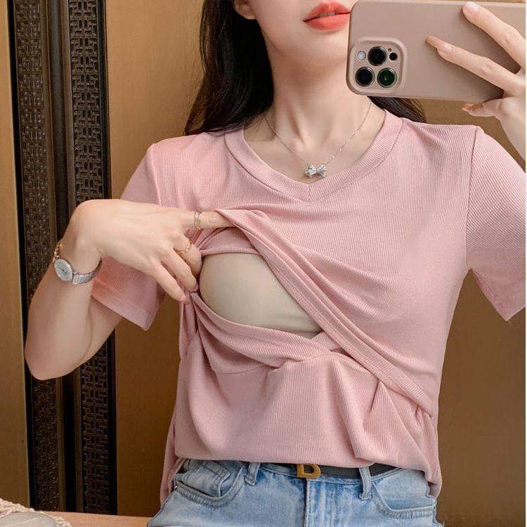 婧麒哺乳上衣辣妈外出t恤女夏季新款短袖喂奶衣打底衫可外穿薄款