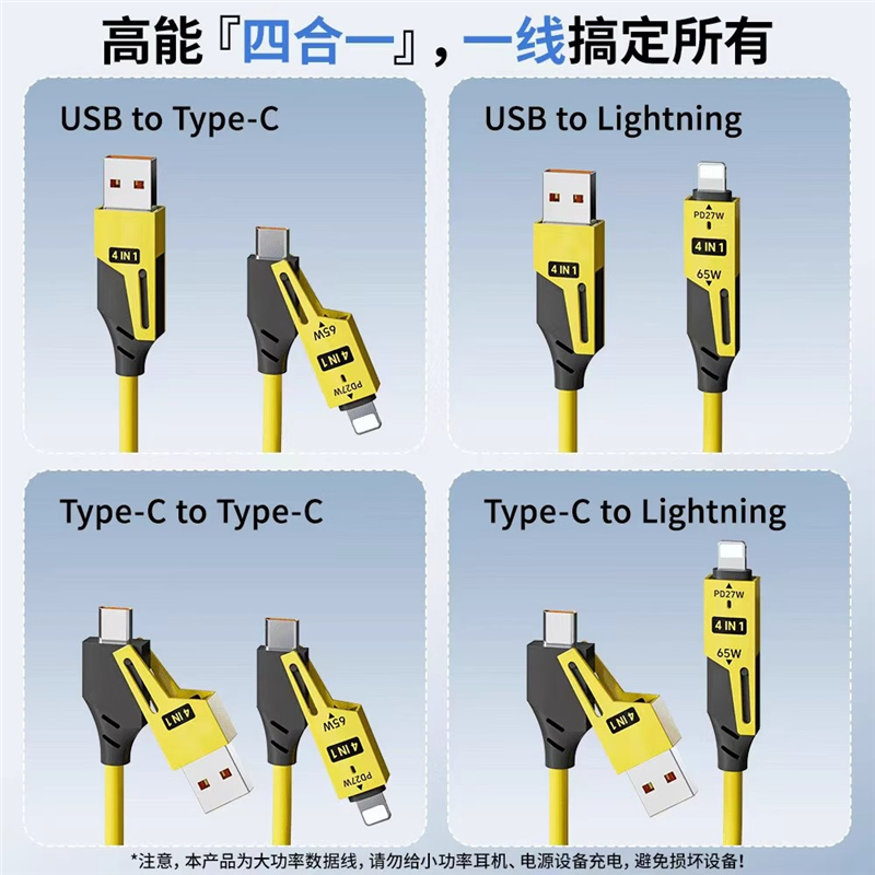 全兼容快充65w四合一弹簧伸缩数据线适用华为闪充typec安卓苹果PD车载Carplay投屏线usb笔记本iPhone16充电器