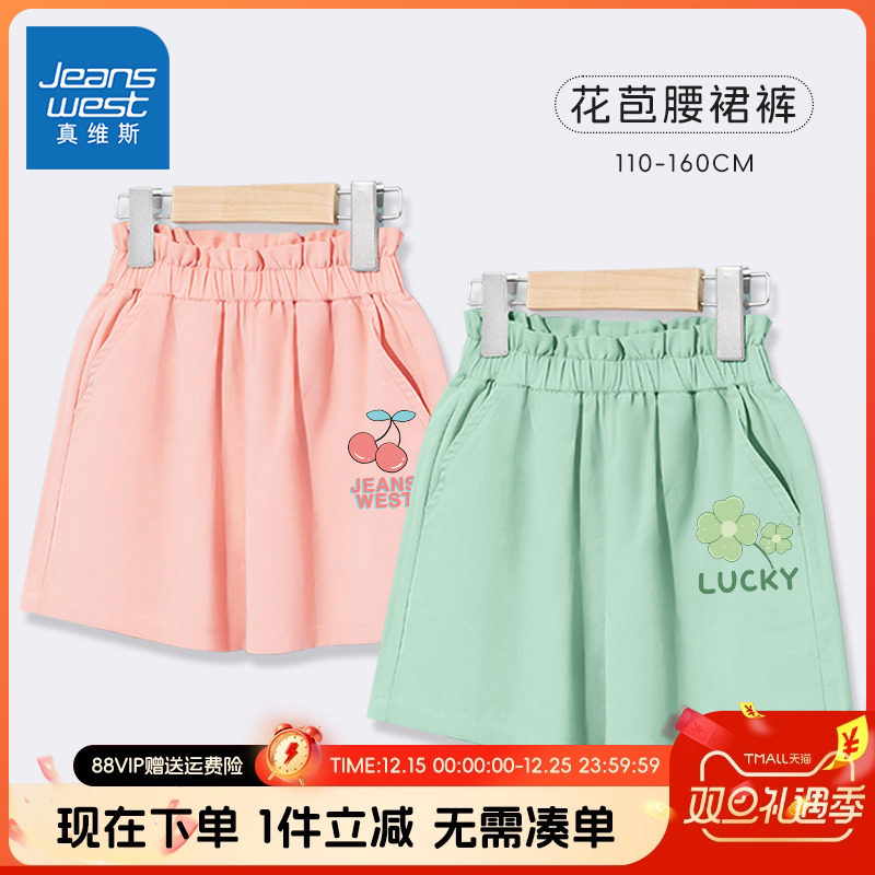 真维斯童装女童裤子夏款儿童薄款休闲运动裤中大童夏款纯棉短裤女
