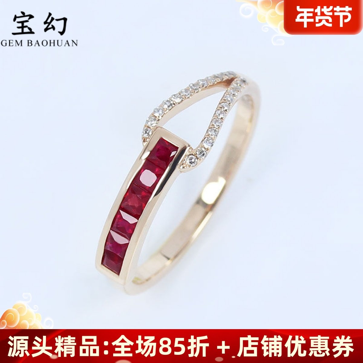 18K玫瑰金天然鸽血红宝石钻石戒指 彩金时尚手饰尾戒排戒女款正品
